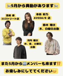 そして、5月1日から【河内 隆太 鈴木翔太】のmeridish出勤日が変わります!